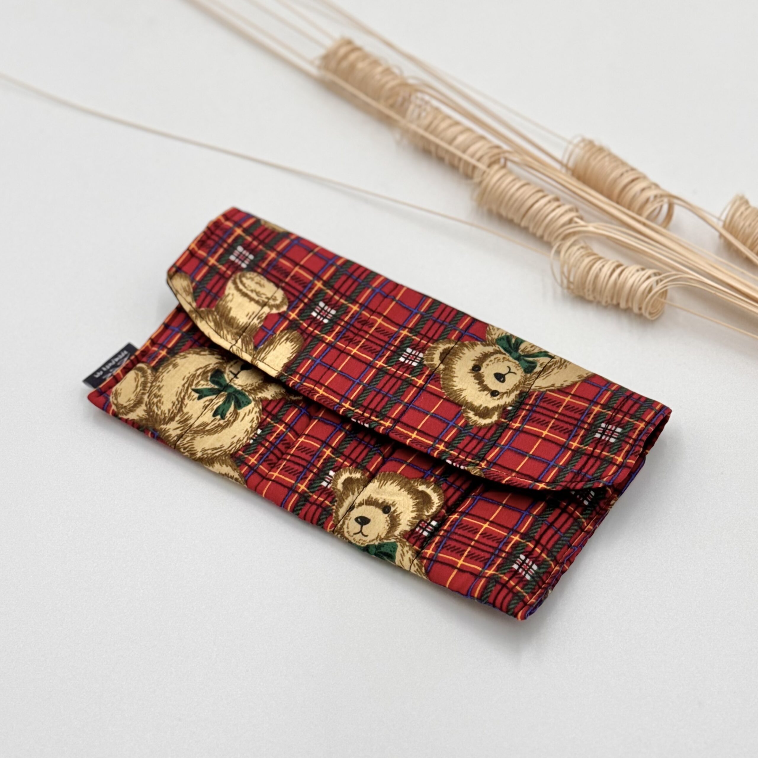 Etui zapinane na rzep, uszyte starannie z wysokiej jakości materiałów z drugiej ręki. Dodatkowo wzmocnione warstwą włókniny, która nadaje mu lekko usztywnioną formę i zwiększa ochronę zawartości.