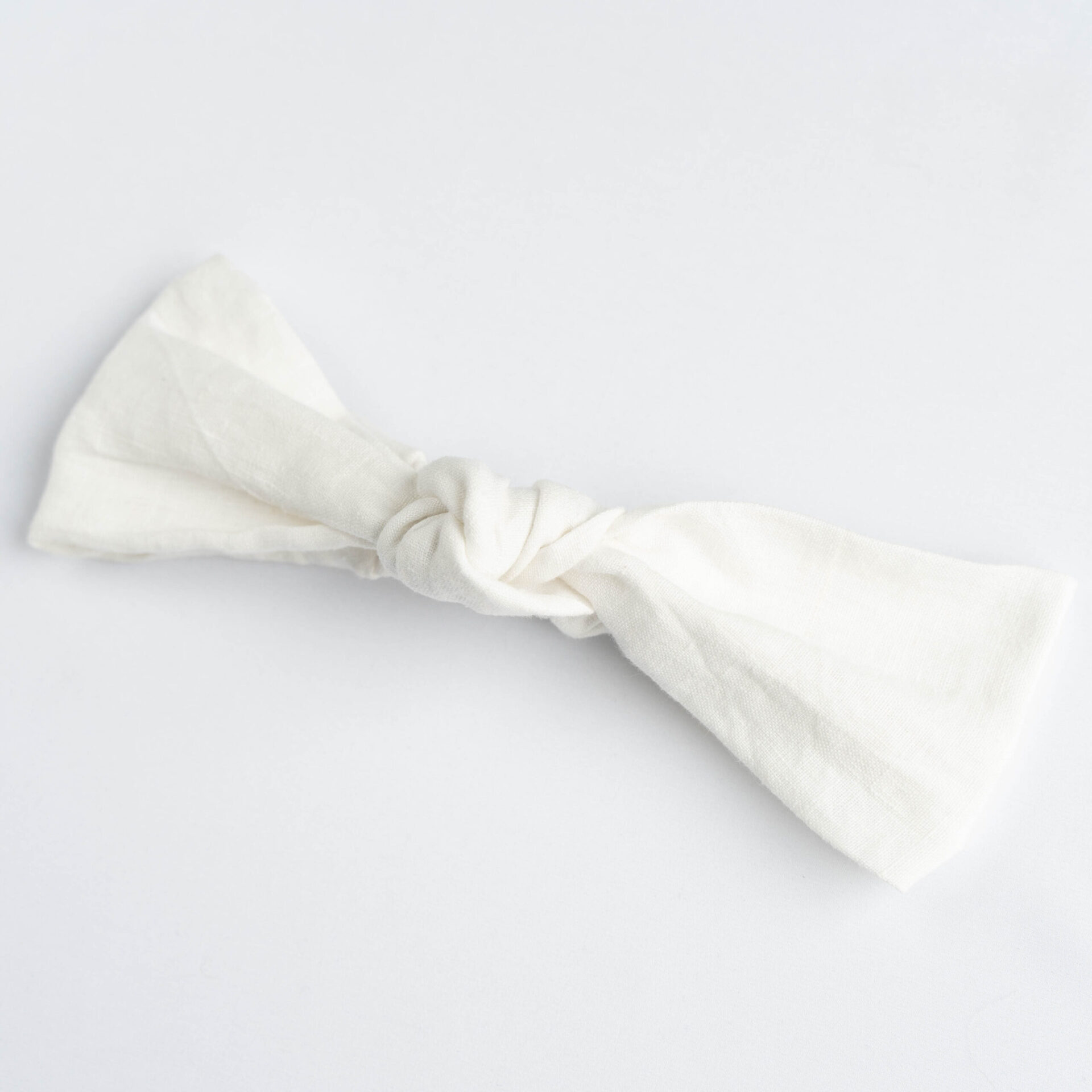 Opaska typu knot headband – z supełkiem. Uszyta z tkaniny lnianej z drugiej ręki.