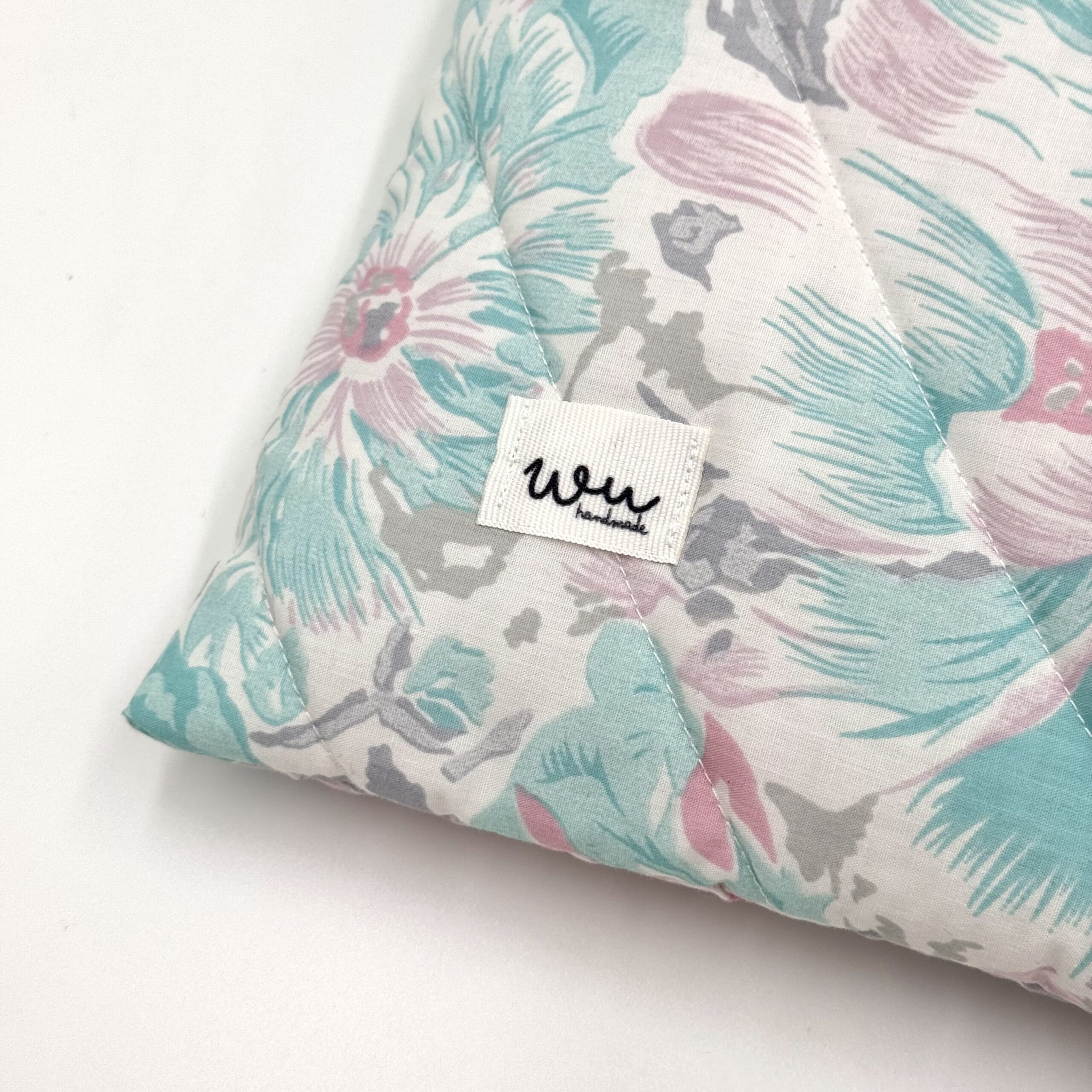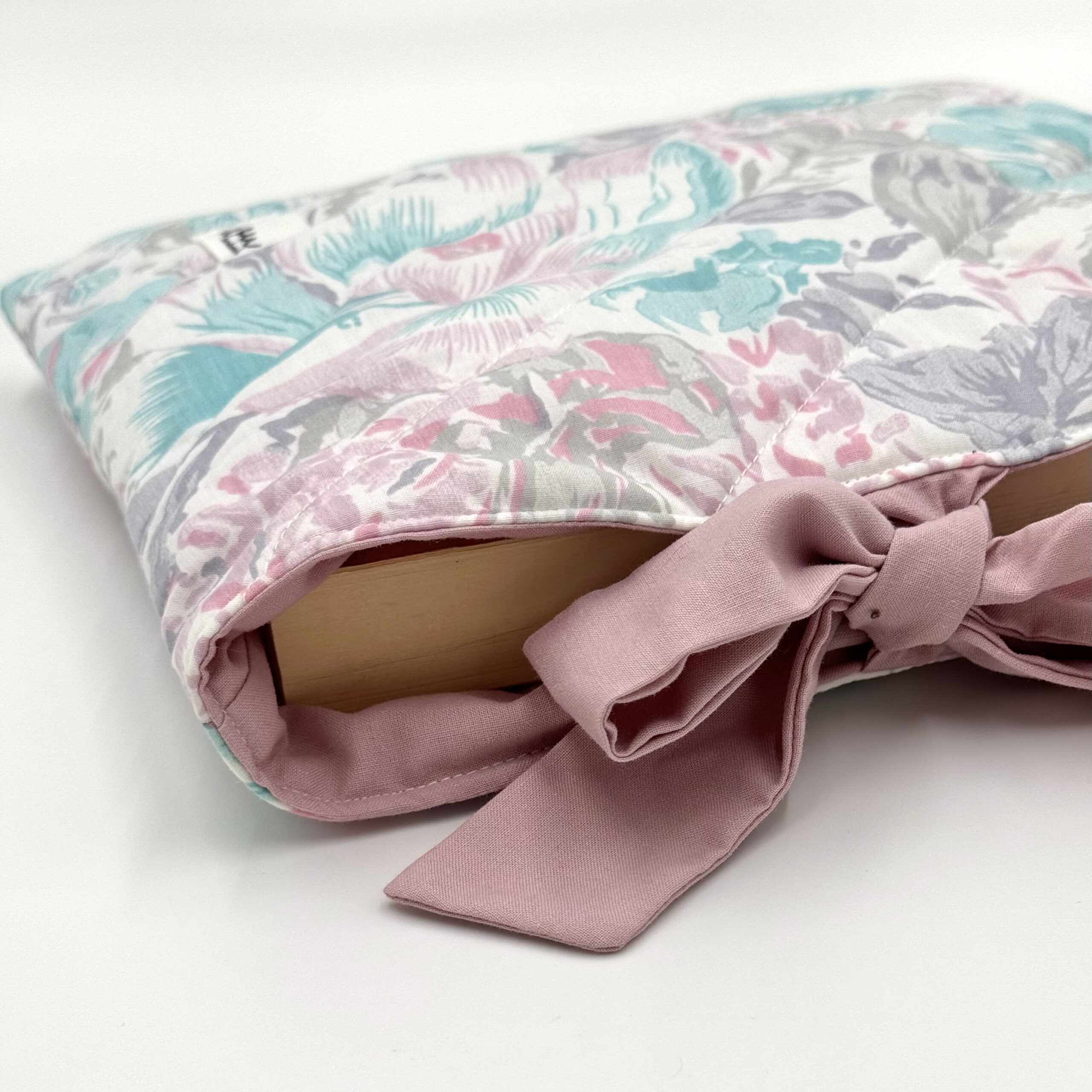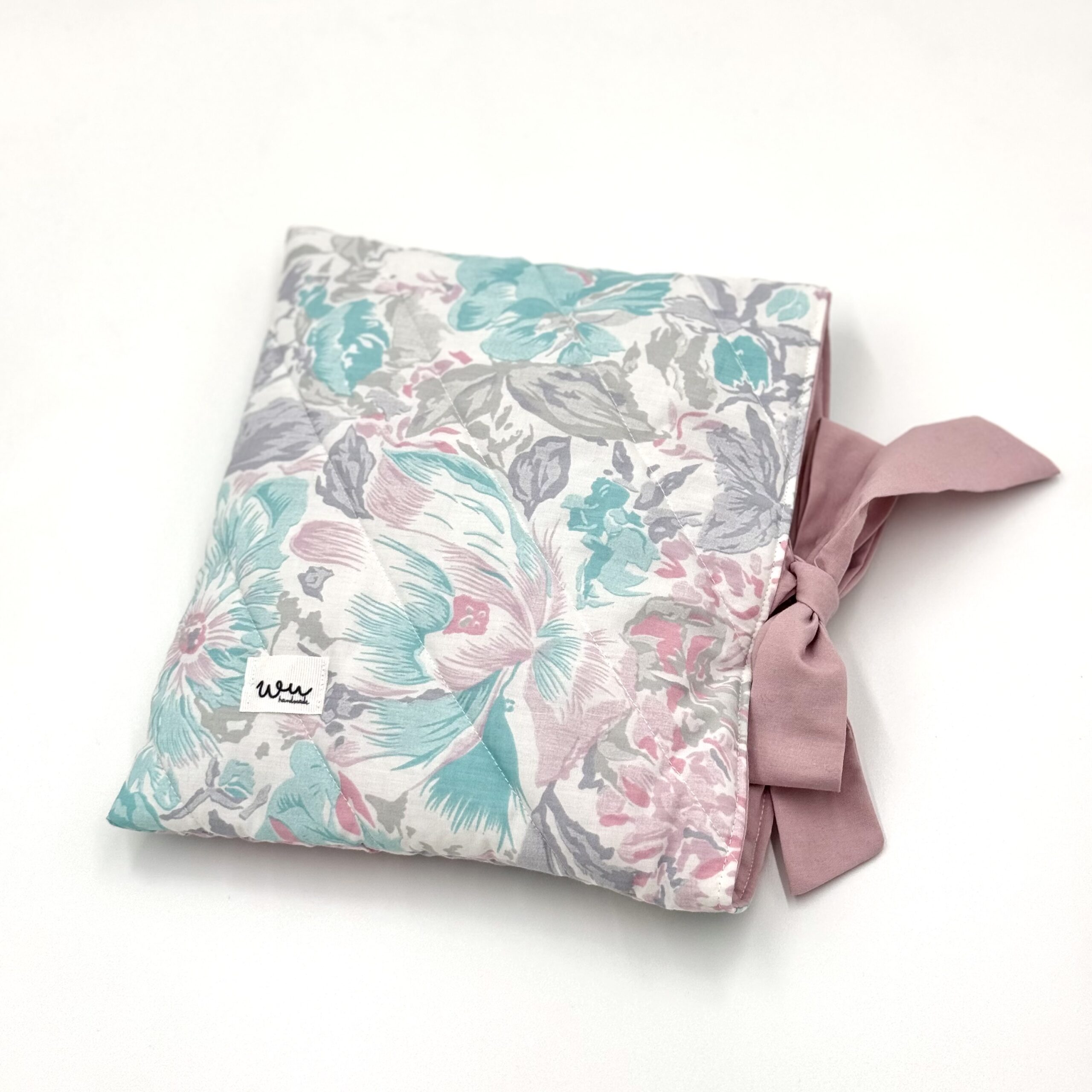 Otulacz/pokrowiec na książkę, uszyty z unikatowych tkanin z drugiego obiegu.