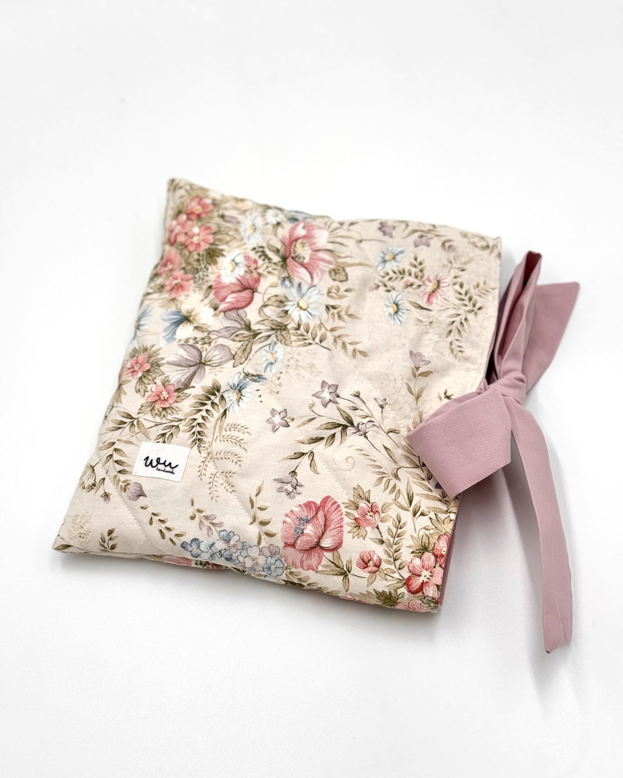 Otulacz/pokrowiec na książkę, uszyty z unikatowych tkanin z drugiego obiegu.