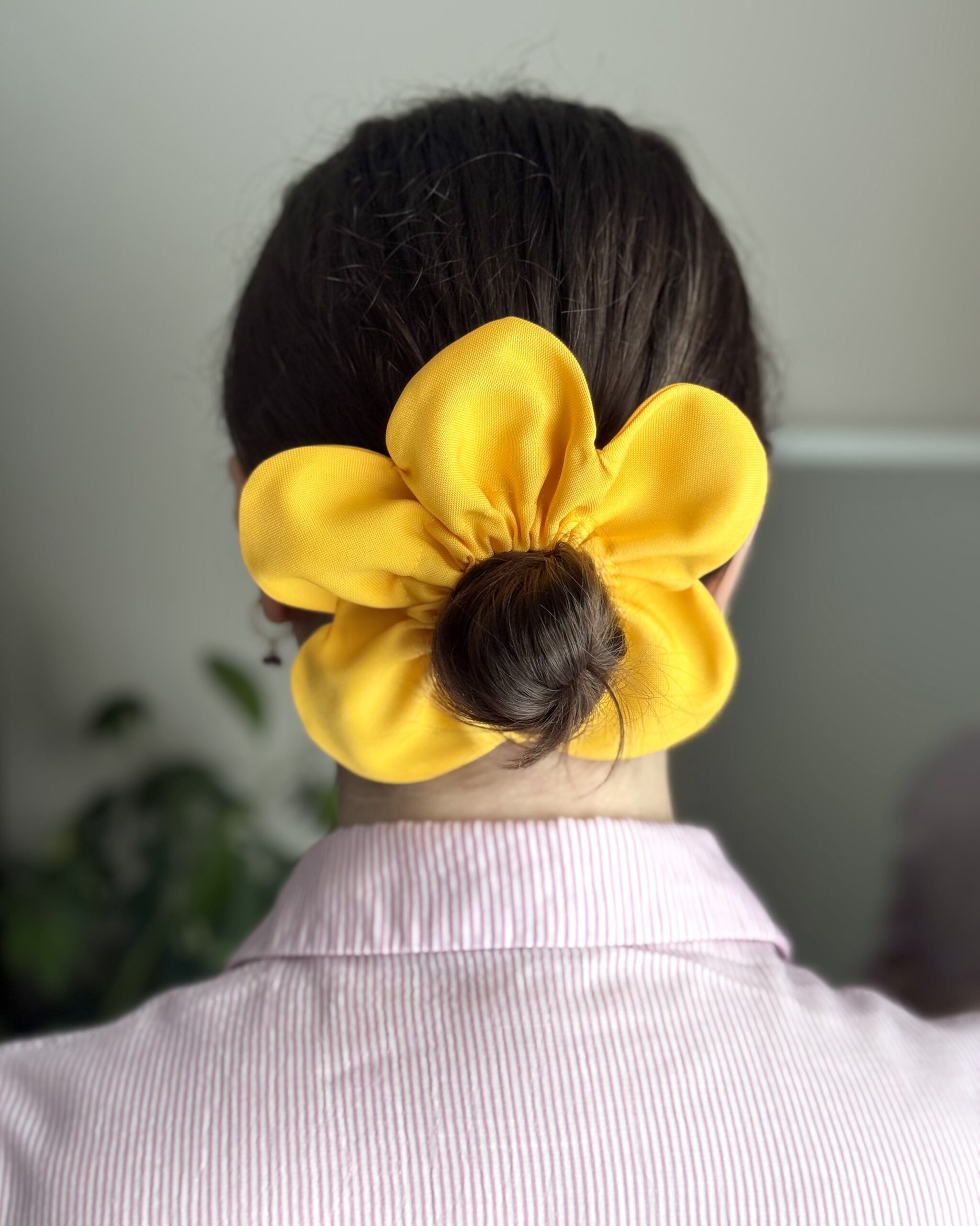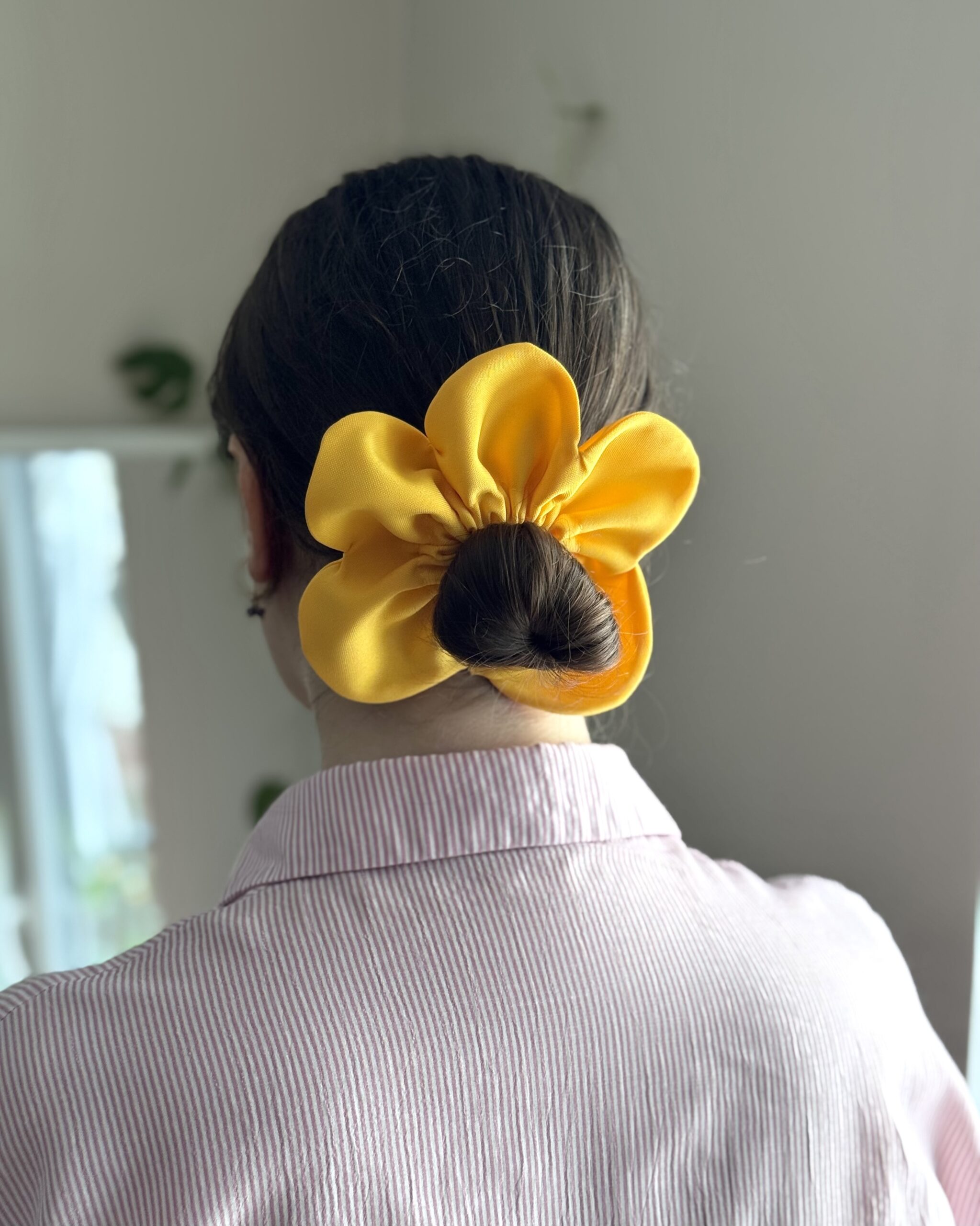 Scrunchie w kształcie kwiatuszka, to wyjątkowa i wyrazista ozdoba do włosów. Jej delikatna, kwiatowa forma dodaje uroku każdej fryzurze, sprawiając, że pasuje zarówno do codziennych stylizacji, jak i bardziej eleganckich okazji.