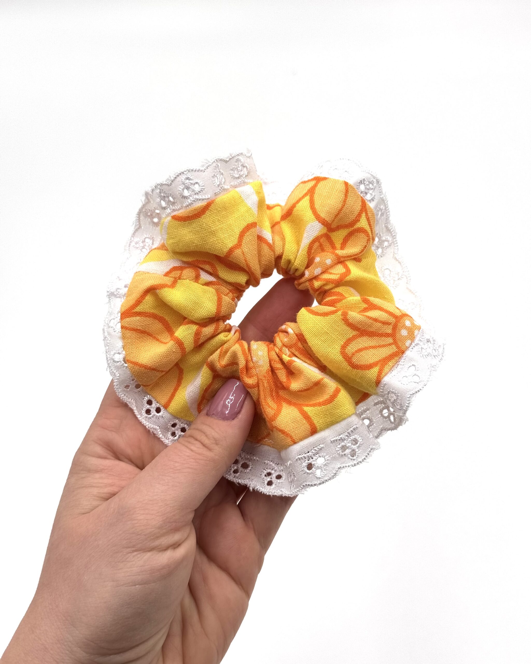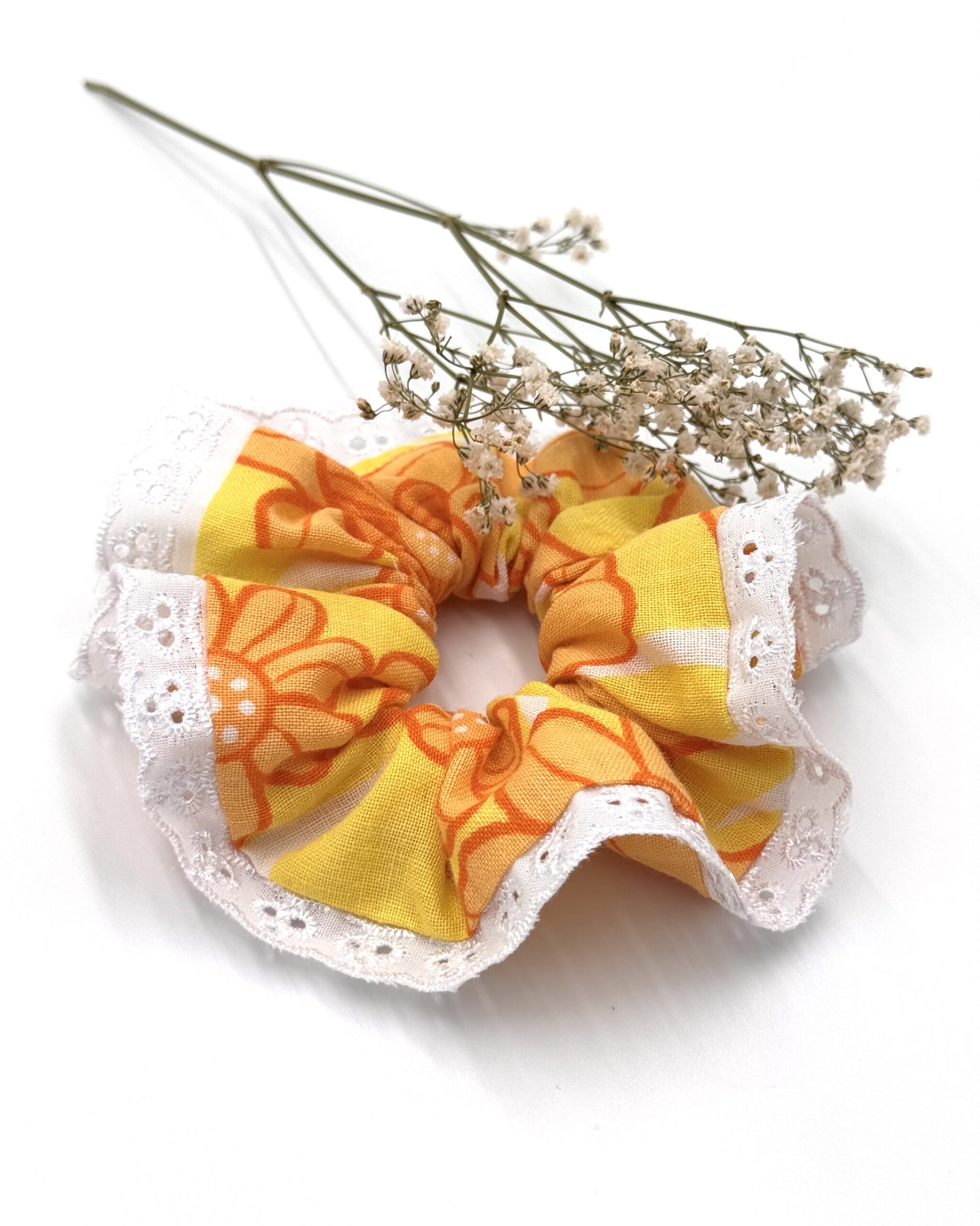 Ta frotka do włosów to wyrazisty akcent, który ożywi każdą stylizację. Nasycone kolory w połączeniu z dekoracyjnym brzegiem wykończonym haftem angielskim tworzą oryginalne, a zarazem kobiece połączenie.