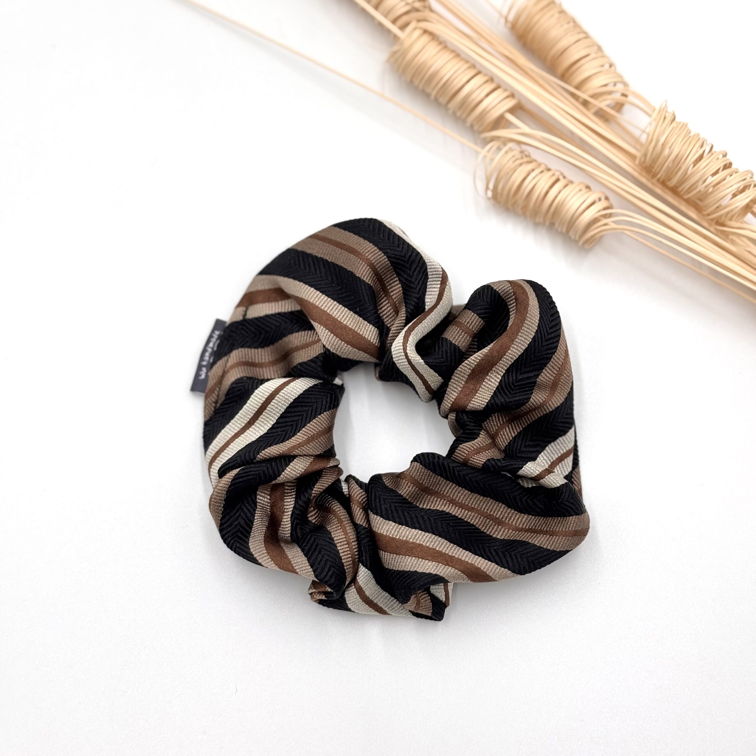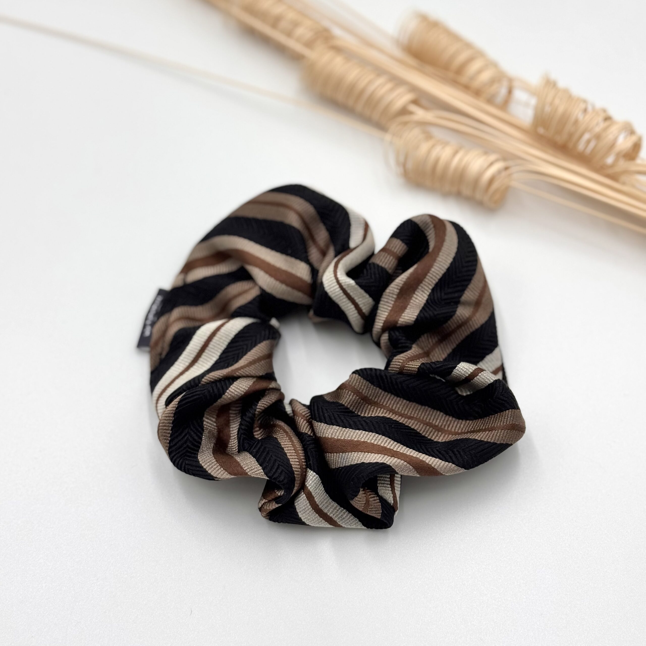 Gumka do włosów uszyta z jedwabnego krawata to elegancki i unikalny dodatek. Miękka i delikatna, nie łamie ani nie wyrywa włosów. Dzięki jedwabnej strukturze jest przyjazna nawet dla wymagających kosmyków, a jej subtelny połysk dodaje stylu.