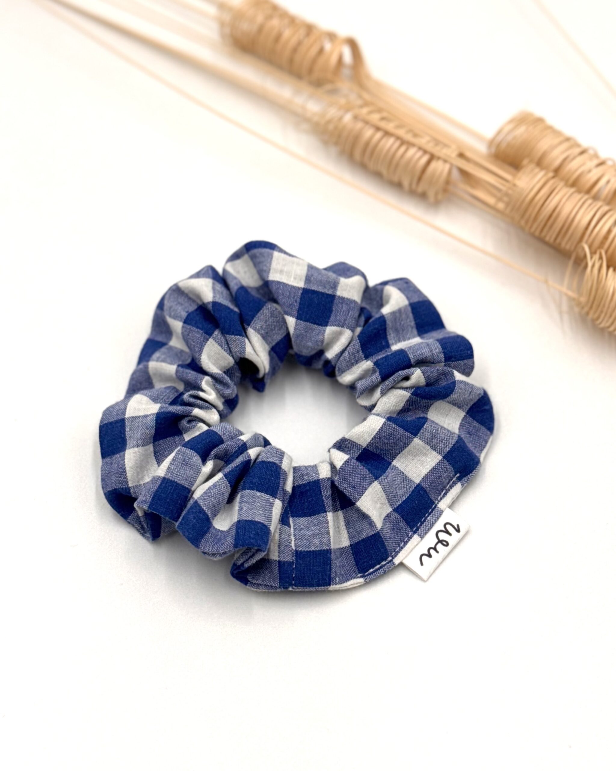 Scrunchie uszyta z wzorzystej vintage bawełny w kratkę.
