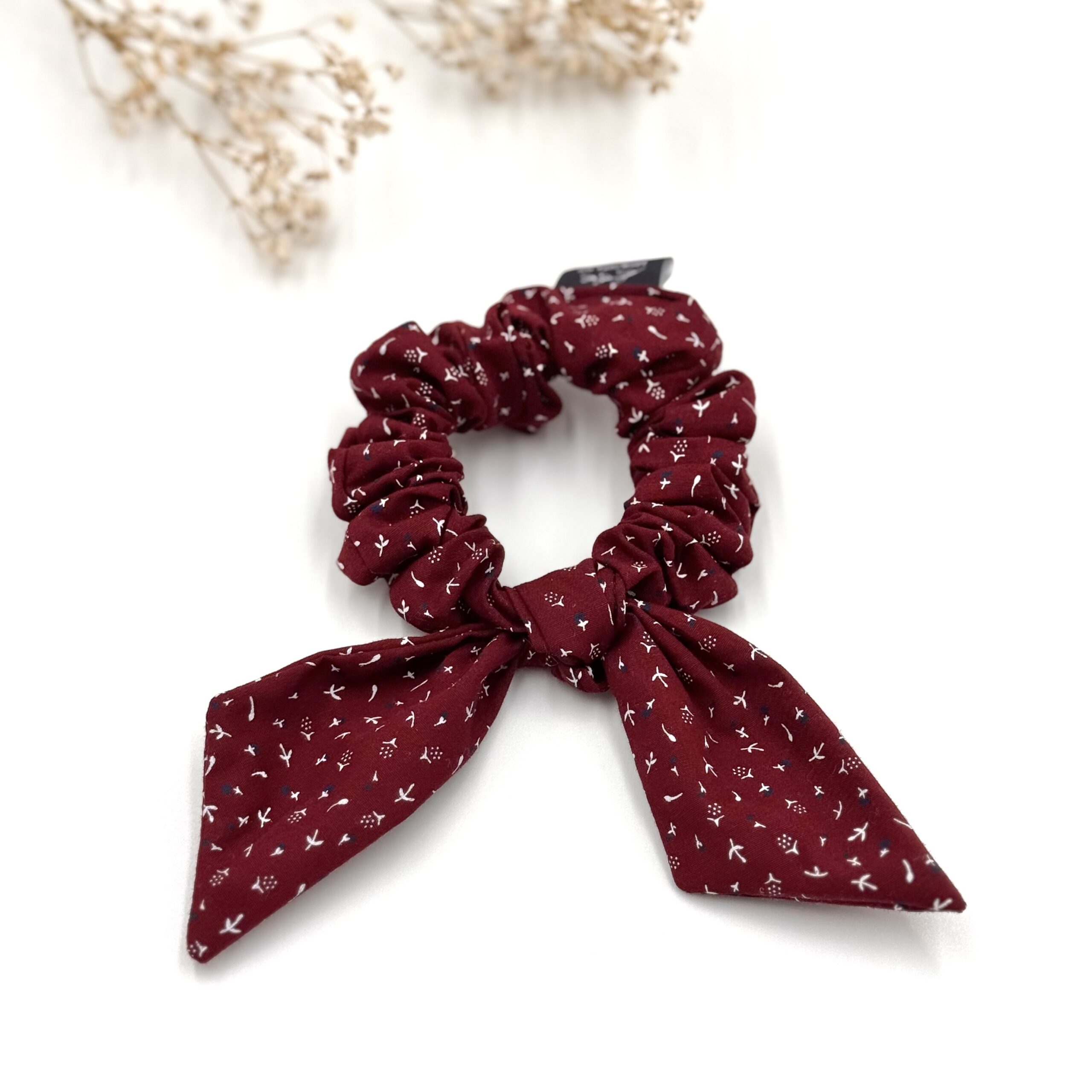 Uszyta z tkaniny w odcieniu bordo we wzorki. Lekka i wygodna, sprawdzi się nie tylko we włosach, ale także jako ozdoba na nadgarstku.