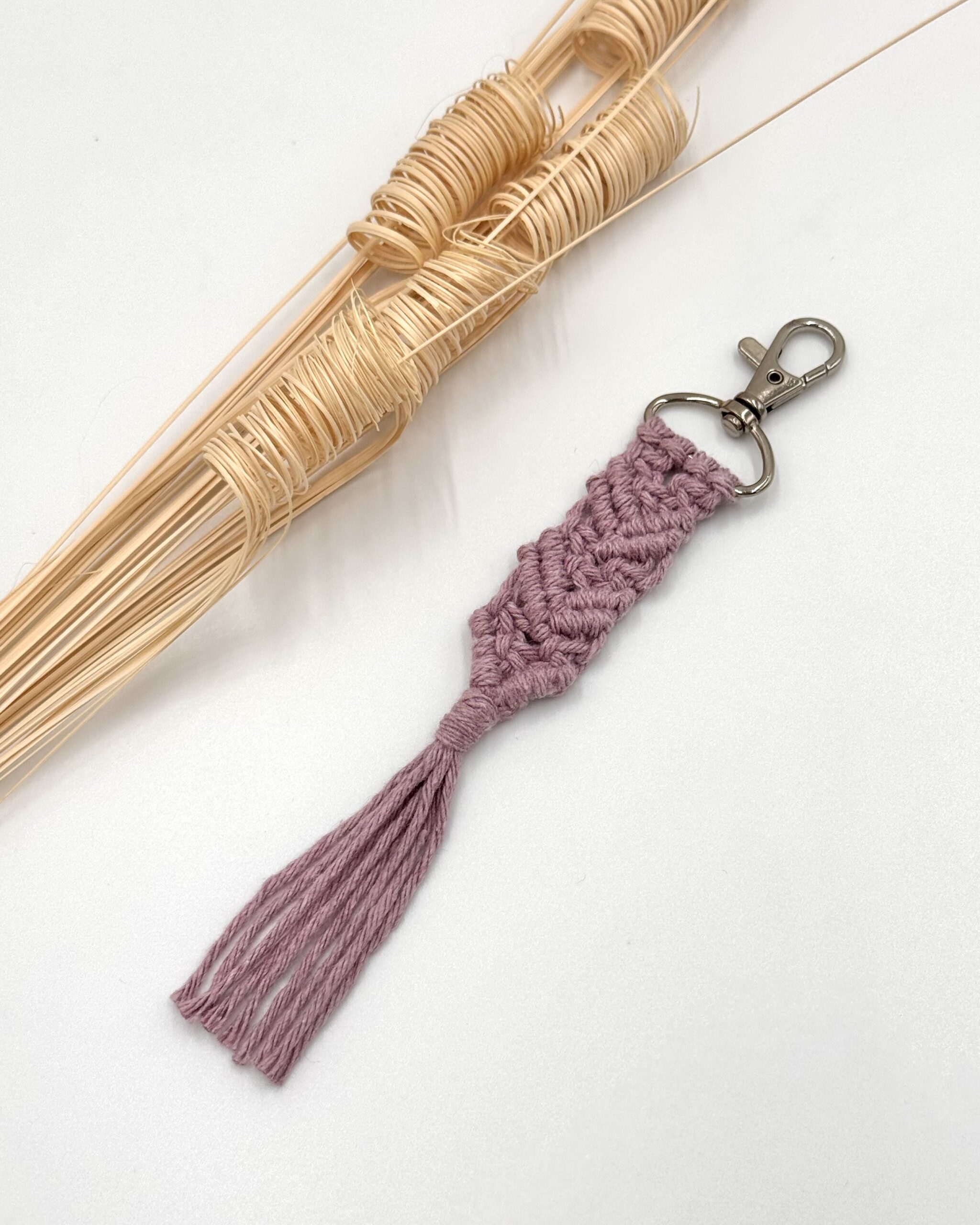 Zawieszka upleciona została na karabińczyku. Idealna do kluczy, portfela czy torebki.